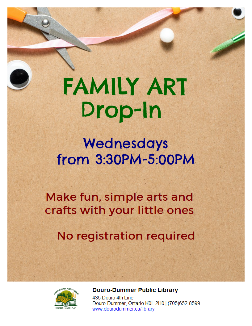 Drop-in to this family friendly arts and crafts program on Wednesday afternoons for all ages. Make a simple craft together with your little ones. No registration required.