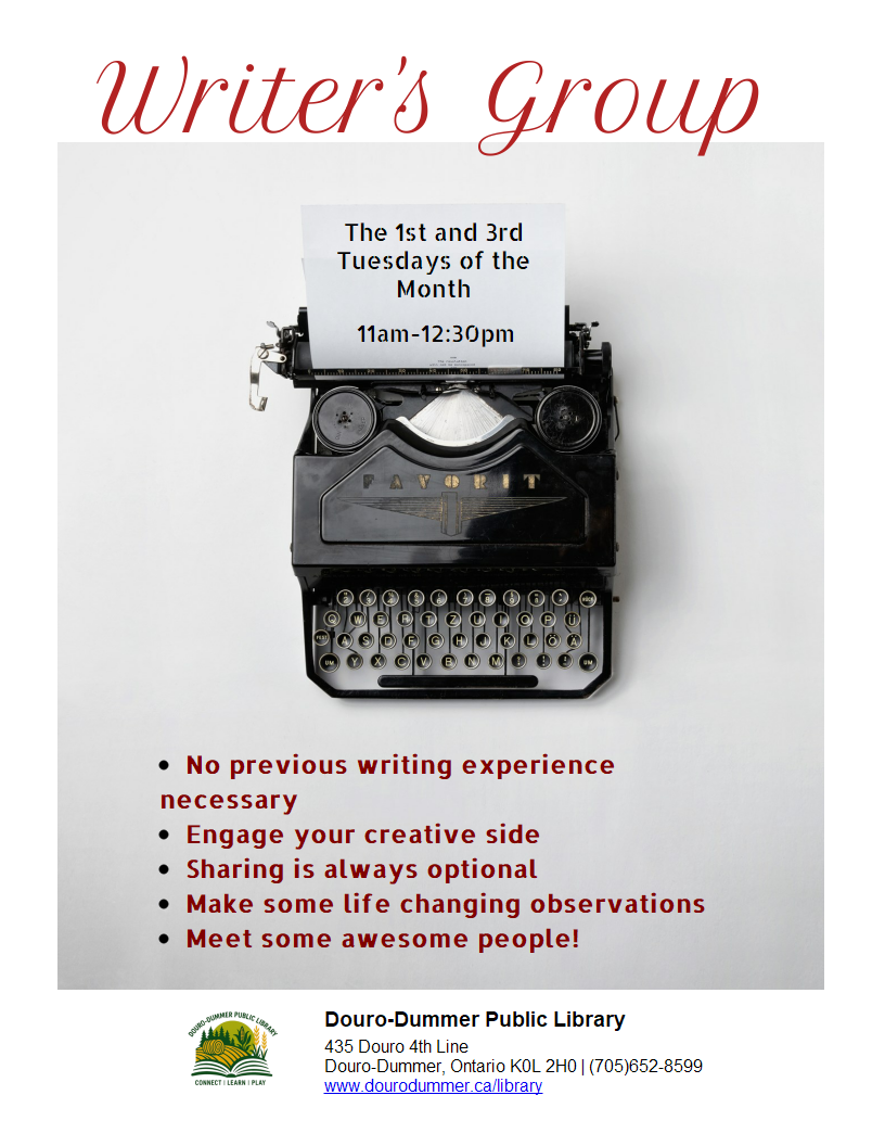 Join us for writers' group where you will have the opportunity to feel motivated and inspired, develop new skills, and gain exposure to different genres and styles. Let’s get writing together and enjoy the benefits being a part of a creative,...